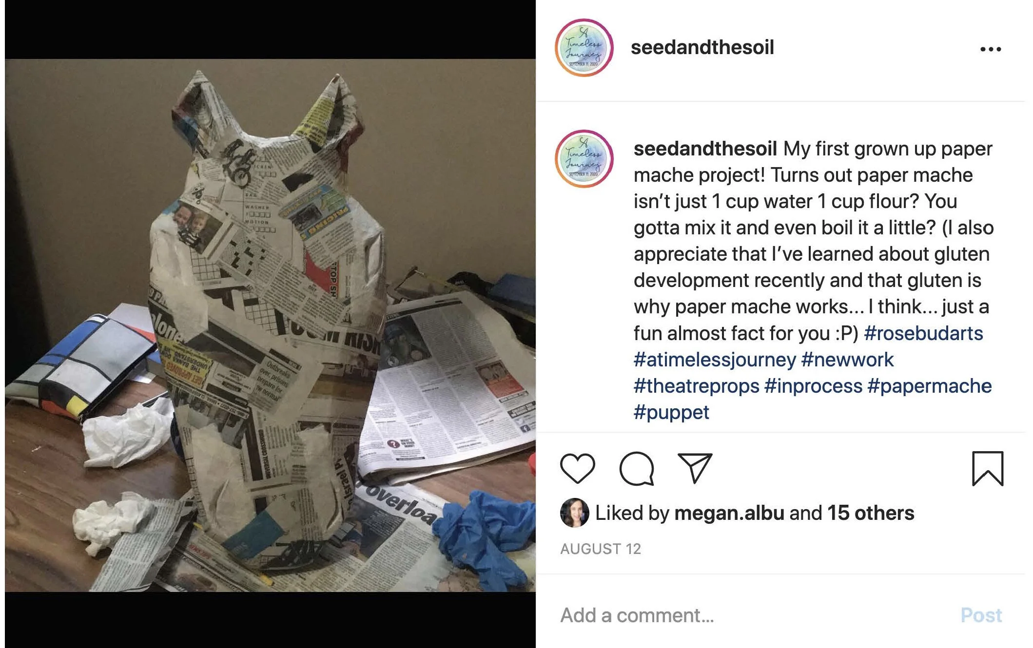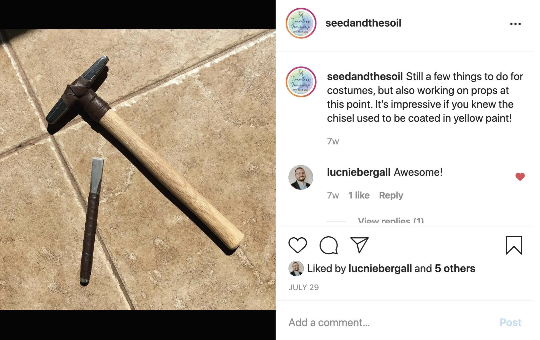 I forgot to keep track of my receipts for this project and that made sorting out the budget a bit like untangling a very twisted knot (10/10 do not recommend). I could have easily kept track by just having an envelope in my purse for my final project receipts, which would have saved a lot of headache. This issue was caused by the difficulty of being the producer and builder at the same time. I did have a set budget but I also had the ability to change or adjust it in my head on the fly, this amount of freedom was very useful for making quick decisions, but made sorting the budget out much more complicated. In the future I hope to remember to keep different roles more separate from each other, if I am producing and filling other positions I hope to treat those other positions with the same attention to the budget as if I were not the producer.
